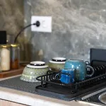 Verbessern Sie Ihren Aufenthalt mit einer Kaffee-/Teemaschine, einem Kühlschrank und Glasgeschirr, die im Vavana Studios zur Verfügung stehen.